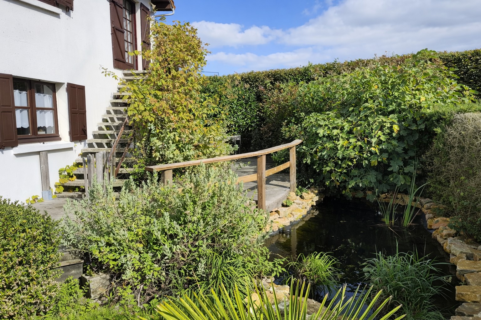 Un espace extérieur avec salon de jardin permet de profiter du cadre naturel.
